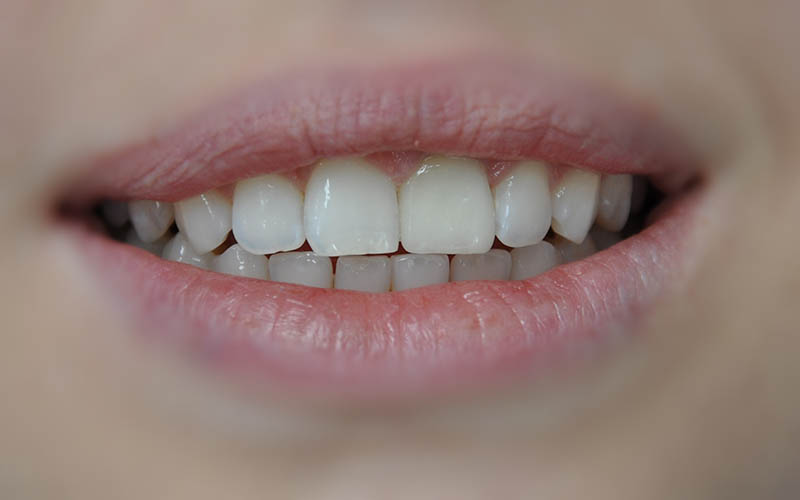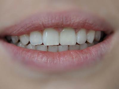 В клинику обратилась пациентка с жалобами на неудовлетворительную пломбу центрального зуба и дисколорит зубов. После проведенного обследования был диагностирован хронический периодонтит зуба 2.1. В зубе повторно проведено эндодонтическое лечение и внутрикоронковое отбеливание коронковой части зуба. Корень зуба был усилен стекловолоконным штифтом. Проведено клиническое отбеливание всех зубов лампой ZOOM 4. Поскольку пломба на зубе 2.1. была обширная, и зуб подвергался не раз эндодонтическому лечению, решено было покрыть его безметалловой керамикой.